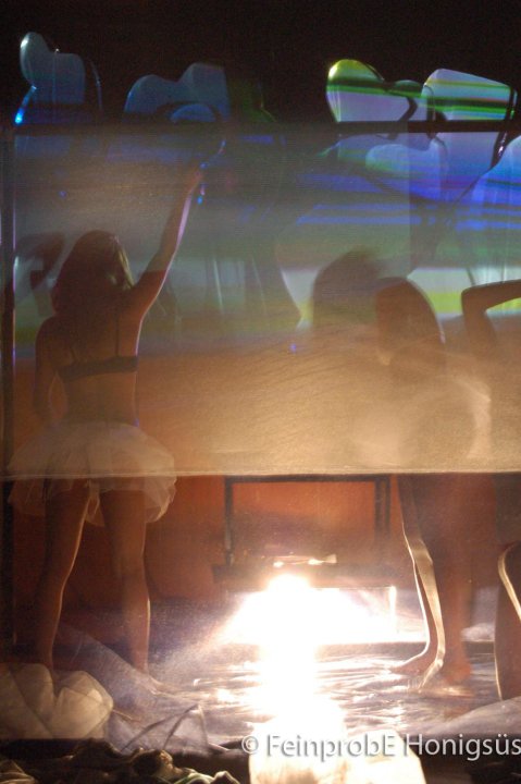 Feinprobe Honigsüss (“The Oversweet Experience” in English) production incorporates artistic residence to develop a Live-Multimedia Performance of the same name. Feinprobe Honigsüss combines the transversal collaborative work of dancers, musicians and visual artists.
